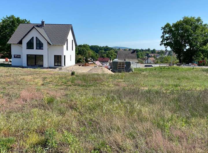 Die Lage des Grundstücks in dem kleinen Baugebiet mit 17 Bauplätzen ist ideal: Südausrichtung mit Sonne von früh bis spät, Blick über Dahlen, angenehme Nachbarn und kein Durchgangsverkehr.