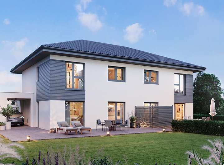 Gerne planen wir den Hausbau mit Ihnen individuell auf diesem Grundstück. Unsere verschiedenen Doppelhäuser finden Sie auf: https://www.elkhaus.de/fertighaus/doppelhaeuser/