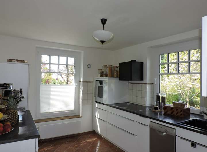 neuwertige Markeneinbauküche mit Argentum Arbeitsplatte, Gaggenau und Bosch/ Siemens Haushaltsgeräten (im Kaufpreis enthalten);