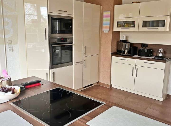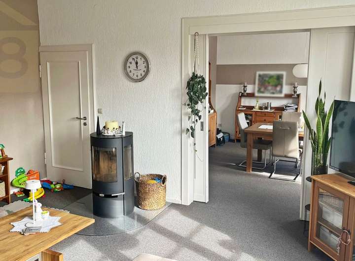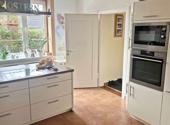 Insgesamt sieben Zimmer, davon fünf Schlafzimmer, eine moderne Küche, ein gemütliches Wohnzimmer mit Kamin, ein Esszimmer, ein Badezimmer mit Dusche und Eckbadewanne, ein Gäste-WC und ein Partyraum mit eigener Küche stehen für Sie zur Verfügung!