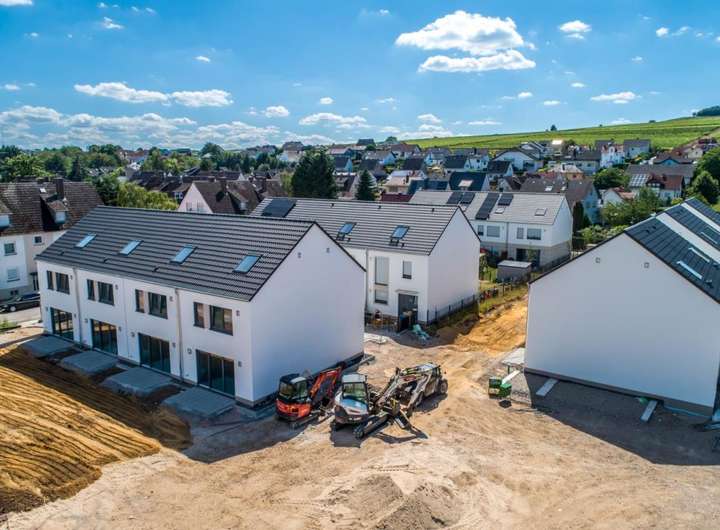 In Langenlonsheim entstehen im 1. Bauabschnitt 24 attraktive Reihen- und Doppelhäuser im energiesparsamen KfW-55-Effizienzhaus-Standard.