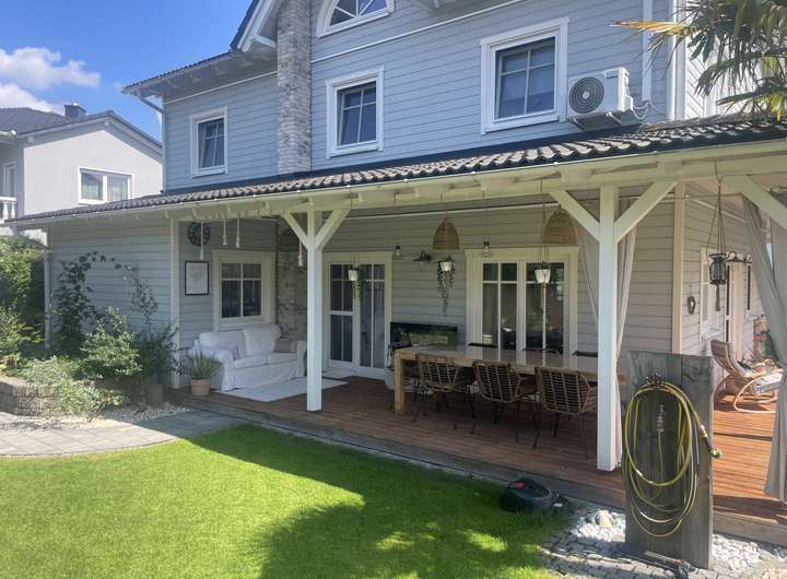 Dieses charmante Einfamilienhaus im beliebten New-England-Design vereint stilvolle Architektur mit einer warmen, einladenden Wohnatmosphäre – ideal für Familien, die viel Platz, Sicherheit und Wohnqualität suchen. Das Haus wurde 2015 errichtet und ist technisch auf modernem Stand, sodass Sie ohne Renovierungsaufwand sofort einziehen können.