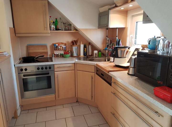 3 Zimmerwohnung mit Einbauküche und Essecke, Abstellkammer in der Dachschräge, Bad mit Badewanne, ca. 78 qm