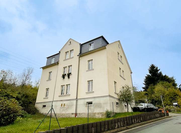 Die ca. 76 m² große Wohnung befindet sich im Erdgeschoss eines sanierten Mehrfamilienhauses in ruhiger Lage von Aue.