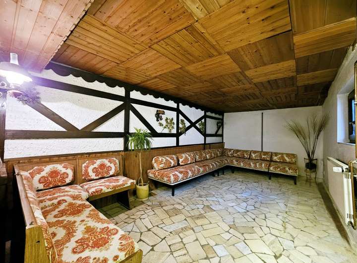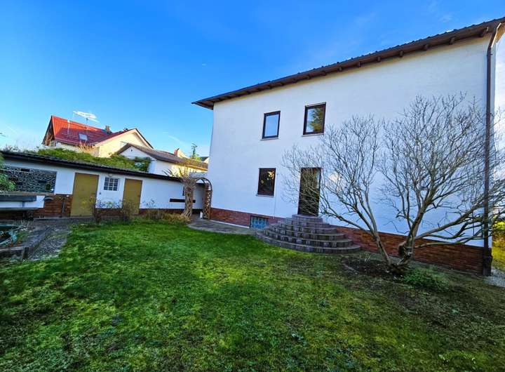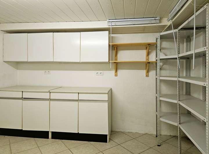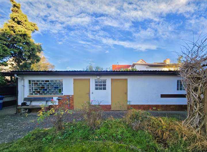 Nebengebäude bietet Platz für eine Werkstatt sowie einen Fahrradraum, während eine Garage ausreichend Stauraum für Ihr Fahrzeug bietet.