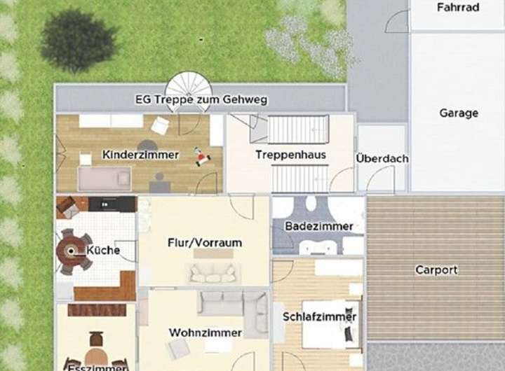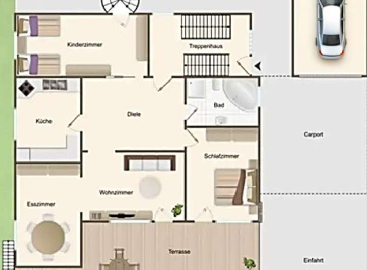 die Möglichkeit gibt, morgens in der Sonne zu frühstücken oder abends entspannt den Tag ausklingen zu lassen. Ein Kinderzimmer mit direktem Zugang zum Garten sorgt dafür, dass auch die Kleinsten ihren Raum zum Spielen und Entdecken haben.