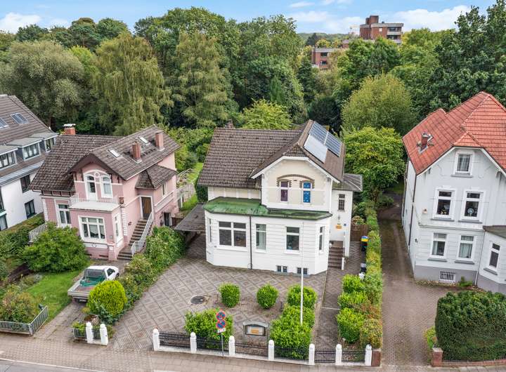 Diese außergewöhnliche Jugendstilvilla aus dem Jahr 1908 befindet sich auf einem 1.417 m² großen Grundstück in zentraler Lage von Hamburg-Rahlstedt und vereint eindrucksvolle historische Architektur mit bereits modernisierten und sofort nutzbaren Wohnbereichen. Die Villa ist in drei Einheiten gegliedert und eignet sich ideal für Wohnen, Arbeiten oder eine Mehrgenerationennutzung.