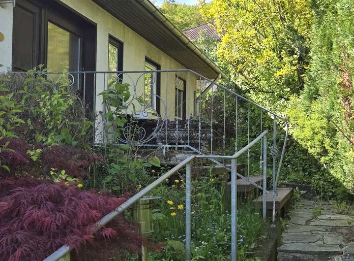 Auf einem wunderschönen Hang-Grundstück mit 945 qm Fläche steht der großzügige Bungalow mit zwei Wohneinheiten.