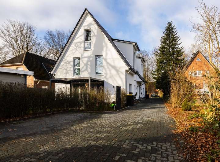 Ruhig leben, aber trotzdem die Metropole Hamburgs genießen? Dann ist die Doppelhaushälfte mit kleinen Garten und eigenem Außenstellplatz genau das Richtige für Sie!