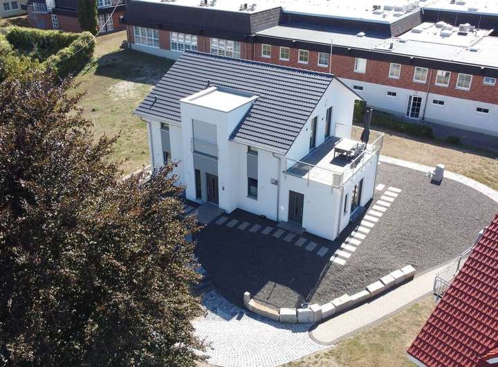 Dieses beliebte Modell mit Satteldach aus unserer LifeStyle Serie verbindet Funktionalität und klare Linien mit durchdachter Raumaufteilung und besonderen Details. Dieses Haus bietet nicht nur eine zeitlose Formensprache, sondern auch die Flexibilität, die Baufamilien sich wünschen. Mit einer Nettogrundfläche von etwa 160 m² kannst du ein komfortables und geräumiges Zuhause gestalten, das den Bedürfnissen aller Bewohner gerecht wird. Offenheit und Großzügigkeit prägt das Erdgeschoss mit einem einladenden, offenen Wohnbereich, der durch die geschickt platzierte Treppe elegant strukturiert ist. Große Fensterflächen lassen reichlich Tageslicht herein und schaffen eine helle und freundliche Atmosphäre. Im Obergeschoss sind private Rückzugsorte zu finden. Zwei Kinderzimmer, ein Elternschlafzimmer und ein modernes Badezimmer sorgen dafür, dass jeder sein eigenes Reich hat. Die geradlinige Architektur und die hochwertige Ausstattung verleihen diesem Zuhause eine zeitlose Eleganz, die sowohl funktional als auch ästhetisch ansprechend ist.