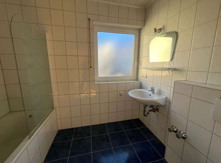 - Badezimmer mit Badewanne und Duschabtrennung