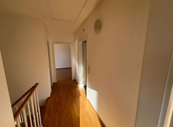 Im Obergeschoss stehen Ihnen zwei Schlafzimmer, eines mit Balkon, zur Verfügung. Das Badezimmer hat eine Badewanne mit Duschabtrennung, der Abstellraum bietet Ihnen auf dieser Etage noch zusätzlichen Stauraum.