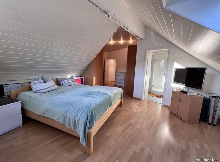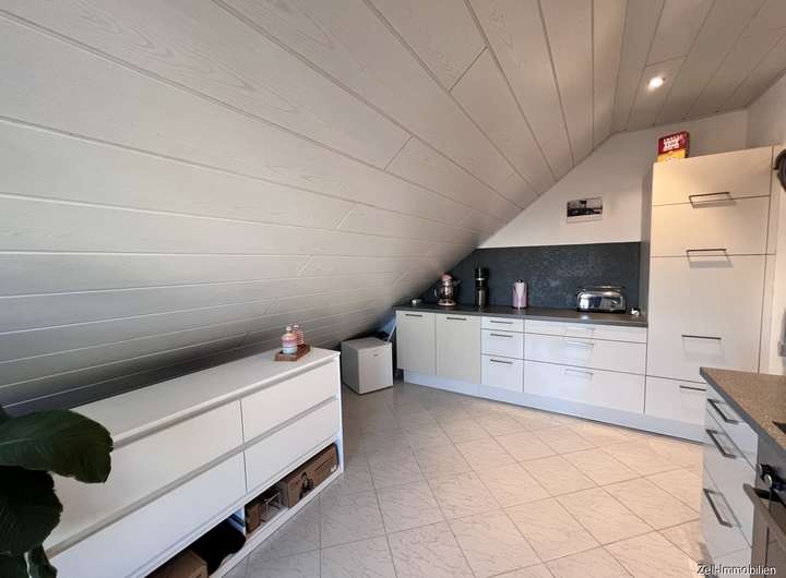 Im Dachgeschoss befindet sich die gemütliche 2,5-ZKB-Wohnung mit einem großzügigen Wohn- und Esszimmer, einem Wannenbad, eine Küche die mit einer Einbauküche ausgestattet ist und ein Schlafzimmer mit zusätzlichem Duschbad. Bei Bedarf kann man die Dachgeschosswohnung auch in zwei 1-ZKB-Wohnungen aufteilen.