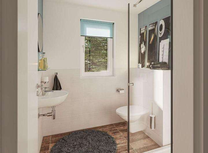Gestalten Sie Ihr Badezimmer als persönliche Wohlfühloase ganz nach Ihrem Geschmack. Das Gäste-WC bietet außerdem Platz für eine zusätzliche Dusche.
