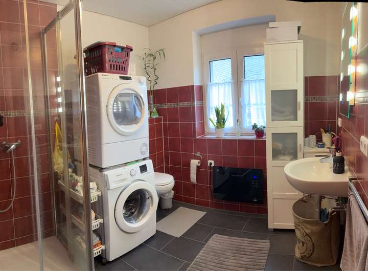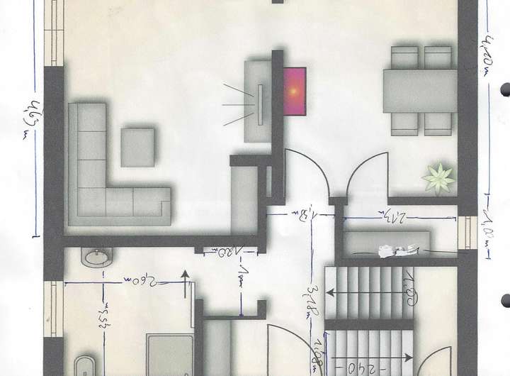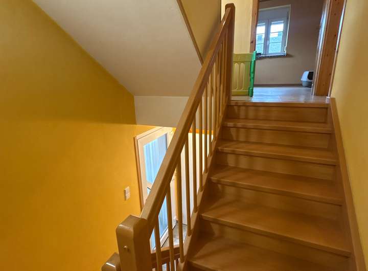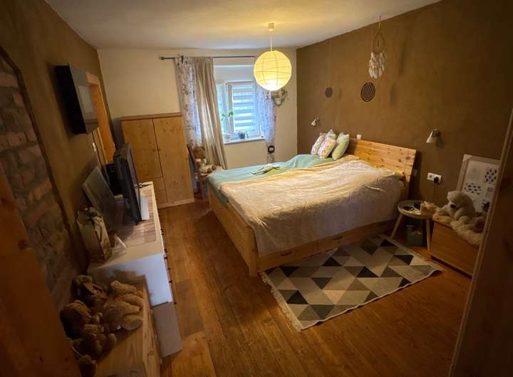 Im Ergeschoss finden Sie die Küche mit Abstellraum, Bad und Wohnzimmer. Aufgearbeitete Böden und neu gestaltete Böden vermitteln ein Wohlfühlgefühl. Die Wände wurden teils mit den original nachempfundenen Lehmputzen verputzt. Eine tolle Vollholztreppe führt zu den weiteren Geschossen.