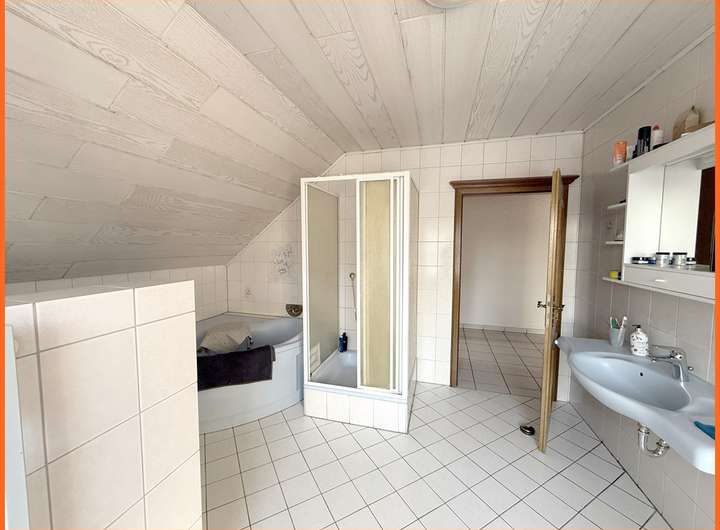 Bad mit Dusche, Bad mit Wanne, Bad mit Fenster, Dachboden, Einbauküche, Fussbodenheizung, Garage, Garten, Fliesen, Gäste-WC, Stellplatz, Terrasse