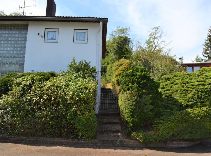 Dieses wertvolle Grundstück in einer begehrten Lage ist eine wahre Rarität und wird Sie mit einem atemberaubenden Ausblick in die Natur verzaubern. Das angrenzende Waldgrundstück bietet eine exklusive Entspannungsoase und gewährt Ihnen eine unvergleichliche Privatsphäre für die gesamte Familie. Ein privater Zufahrtsweg führt Sie zu diesem idyllischen Fleckchen Erde. Die ruhige, sonnige Lage des Grundstücks ist nur etwa 400 m von der Grundschule in der Kleiststraße entfernt – perfekt für die Familienfreundlichkeit. Die Außenanlage ist pflegeleicht angelegt, bietet jedoch die Möglichkeit, ganz nach Ihren eigenen Wünschen und Vorstellungen umgestaltet zu werden. Lassen Sie Ihrer Kreativität freien Lauf! Das Einfamilienhaus überzeugt durch seine hellen, großzügigen Räume und bietet ein enormes Potenzial für individuelle Gestaltungsmöglichkeiten. Mit etwas handwerklichem Geschick und Liebe zum Detail kann dieses Haus zu einem wahren Juwel werden. Alternativ bietet sich die Möglichkeit, das Grundstück für einen Neubau zu nutzen. Das lichtdurchflutete Wohnzimmer bietet reichlich Platz und Zugang zu einer großzügigen Terrasse mit Süd-/West-Ausrichtung – der perfekte Ort, um Sonne und frische Luft zu genießen. Direkt angrenzend finden Sie ein geräumiges Esszimmer, das mit der gut geschnittenen Küche eine harmonische Verbindung bildet. Das Haus verfügt über zwei einladende Schlafzimmer, ein Badezimmer mit Badewanne, Dusche, WC und Tageslicht sowie ein separates Gäste-WC. Leider wurde das Erdgeschoss durch einen großflächigen Wasserschaden in Mitleidenschaft gezogen, was zur Entstehung von Schimmel führte. Daher wurde der Preis des Objektes erheblich reduziert. Das sanierungsbedürftige Haus bietet zahlreiche Möglichkeiten für Umbauten oder einen Neubau. Im Erdgeschoss befinden sich neben dem Kellerbereich auch ein Büroraum mit WC und Dusche, der Heizungsraum, eine Waschküche, Abstellflächen und eine Garage mit einer Nutzfläche von ca. 92 m². Nutzen Sie diese seltene Gelegenheit, ein Grundstück mit riesigem Potenzial zu erwerben und Ihre Visionen in die Realität umzusetzen!