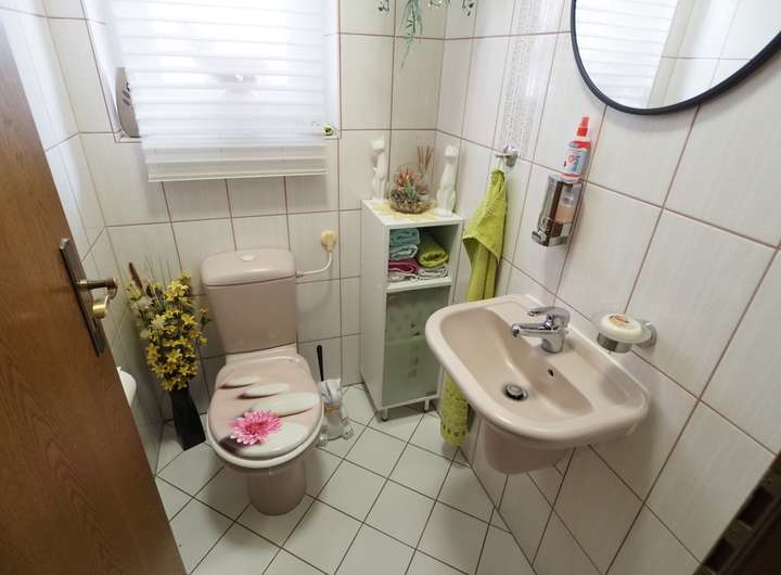 - EG: Wohn- und Esszimmer mit Kachelofen, Küche, Diele, Büro, Gäste-WC, Terrasse