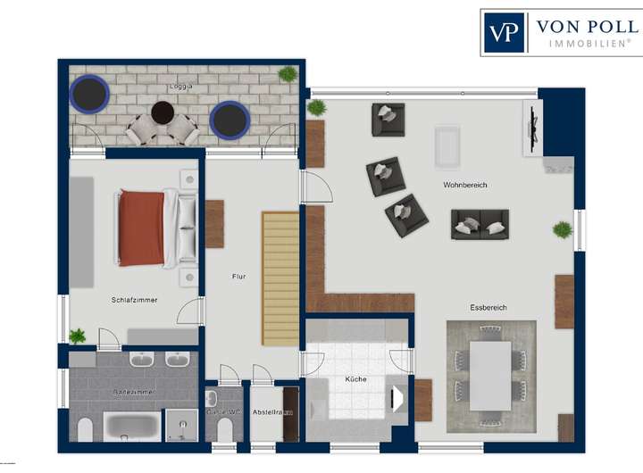 - Ca. 80 m² Terrasse teilweise überdacht und mit Markise ausgestattet