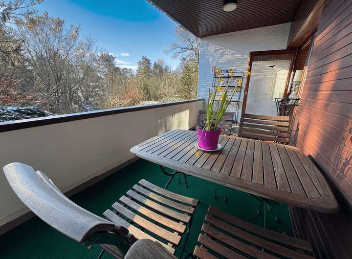 Im Obergeschoss erwartet Sie ein großzügiges Wohnzimmer von 54 m², das mit einem fantastischen Blick in die Natur begeistert. Angrenzend an das Wohnzimmer befindet sich die Küche. Weiterhin finden Sie hier ein Schlafzimmer mit eigenem Bad en suite sowie eine großzügige Loggia, auf der Sie ruhige Stunden genießen können.
