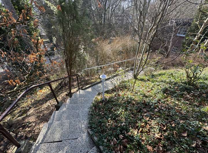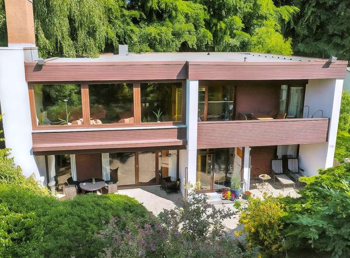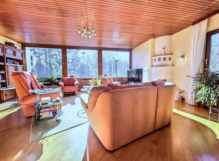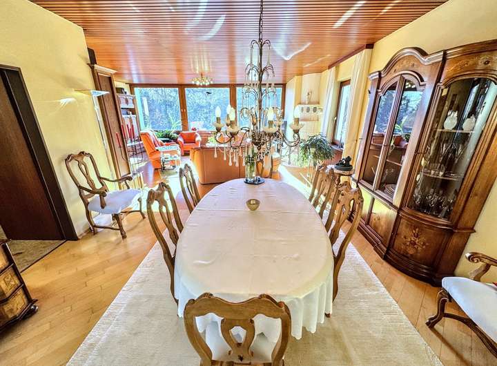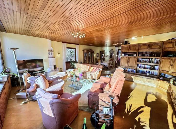 Das vielseitig nutzbare Grundstück bietet am oberen Hang ein teils gewerblich, teils privat genutztes Einfamilienhaus – optional vollständig privat bewohnbar – sowie im vorderen Bereich die Möglichkeit, nach Wunsch einen Neubau wie ein zusätzliches Einfamilien- oder Doppelhaus zu realisieren. Das Einfamilienhaus aus dem Jahr 1972 verfügt über eine Wohnfläche von ca. 190 m², verteilt auf zwei Ebenen.