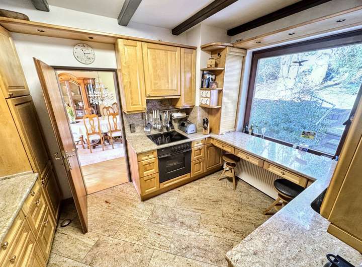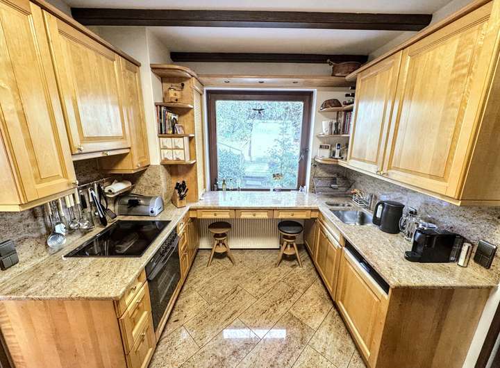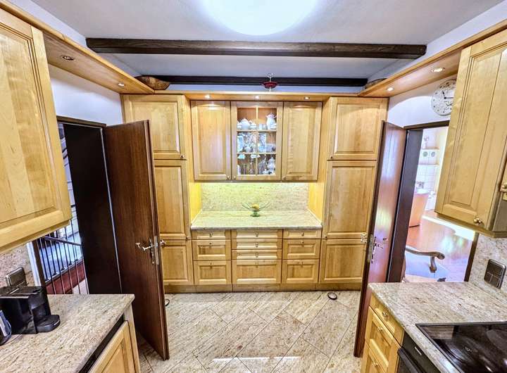 - Massive Birkenholzküche mit Granitarbeitsplatte