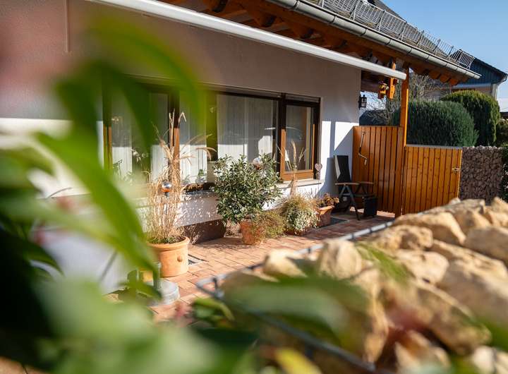 Das Grundstück ist kompakt und pflegeleicht –perfekt zum Entspannen und für gesellige Stunden. Ein geschützter Rückzugsort mit schön angelegtem Freisitz, wettergeschützt durch die Markise.