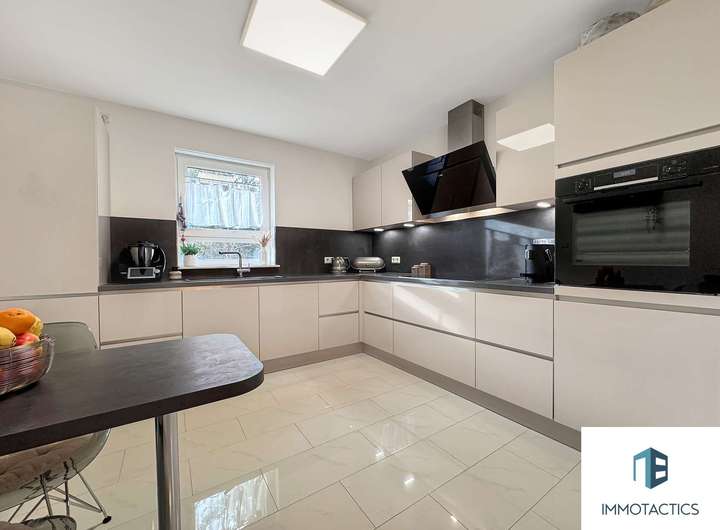 Moderne Ausstattung: Hochwertige Fliesenböden, stilvolle Einbauküchen, helle Wohnräume