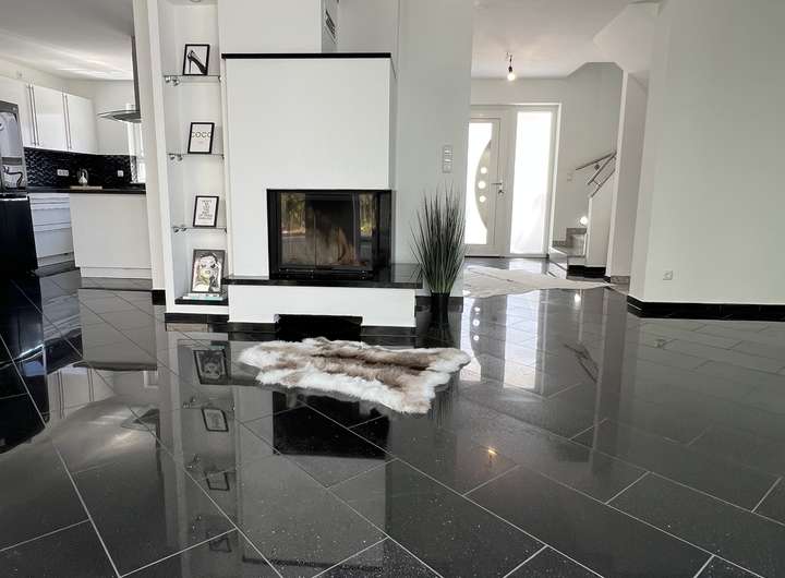 Die Immobilie überzeugt durch eine erstklassige Ausstattung: Fußbodenheizung, Klimaanlage im Wohnzimmer und Schlafzimmer, edler Granitboden „Star-Galaxy“ im gesamten Erdgeschoss, Parkettboden in den Obergeschossen, Terrassenbeläge aus Bangkirai sowie zahlreiche bodentiefe Fenster und Fenstertüren, die für eine optimale Belichtung sorgen.