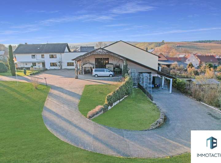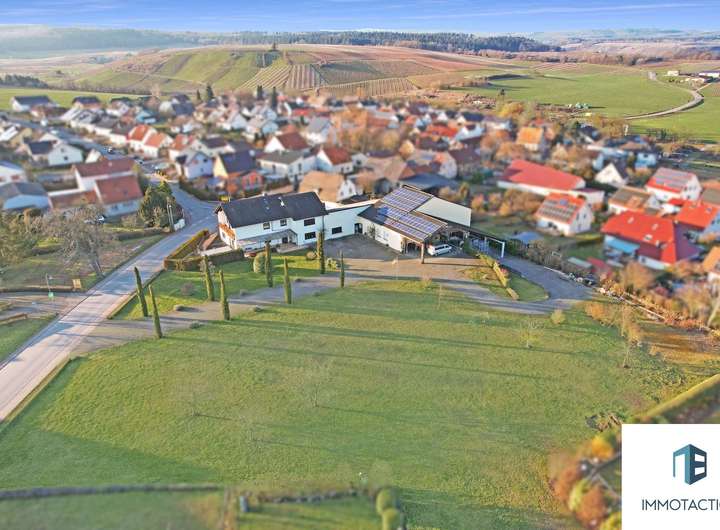 Dieses beeindruckende Anwesen vereint auf einer Grundstücksfläche von 6.453 qm ein großzügiges Einfamilienhaus mit einem etablierten Weingut. Eine einzigartige Gelegenheit für Weinliebhaber, Selbstständige oder Investoren. Die Kombination aus modernisiertem Wohnbereich und betrieblicher Fläche macht diese Immobilie zu einem besonderen Angebot.