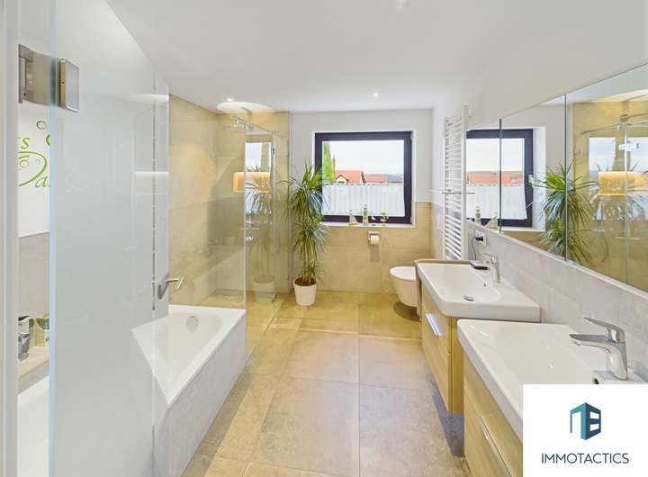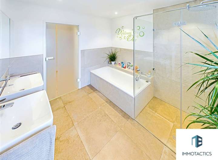 - 2020 komplett saniertes Badezimmer mit moderner Ausstattung, Doppelwaschbecken und begehbarer Dusche