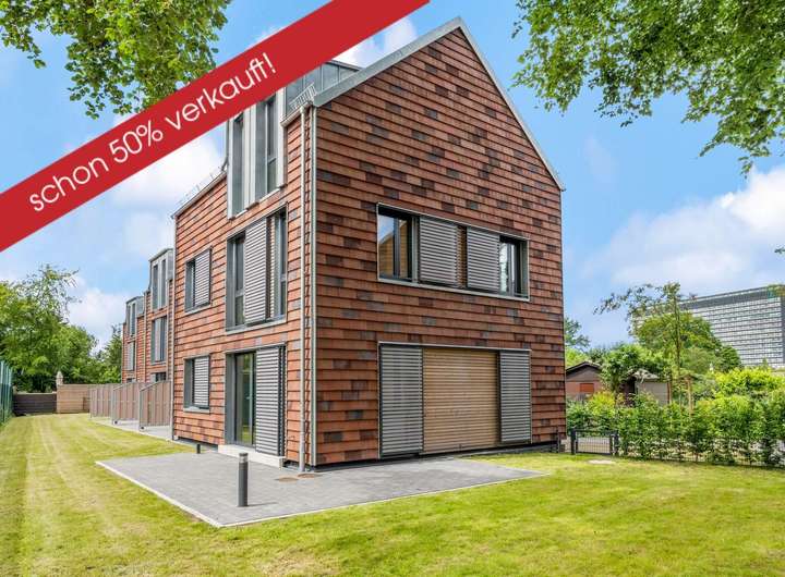 Dieses Neubauprojekt vereint gekonnt komfortables und außerordentlich stilvolles Wohnen mit einer modernen ökologischen Bauweise. Die 11 Stadthäuser wurden Ende 2023 in einer CO2-neutralen Holz-Hybrid-Bauweise mit hocheffizienter Wärmedämmung fertiggestellt und treffen den heutigen Zeitgeist nur allzu gut.