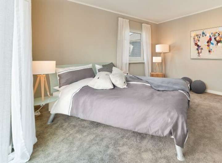 Die hohe Qualität der Ausstattung zeigt sich in den ausgewählten Bodenbelägen wie Fertigparkett, Fliesen, Laminat und Parkett. Diese Materialien bieten nicht nur eine edle Optik, sondern auch Langlebigkeit und Wärme. Die Beheizung erfolgt über eine effiziente Wärmepumpe, die umweltfreundlich und kostensparend arbeitet. Als Niedrigenergiehaus mit KFW55-Standard profitieren Sie von geringem Energieverbrauch und hohen Einsparungen bei den Energiekosten.