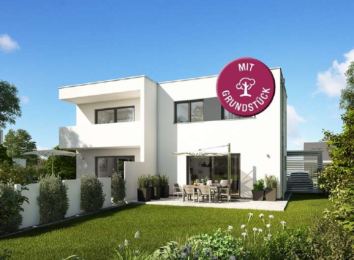 Der gezeigte Preis versteht sich inklusive Grundstück und exklusive der Baunebenkosten und bezieht sich auf die Variante rechts des Hauses.