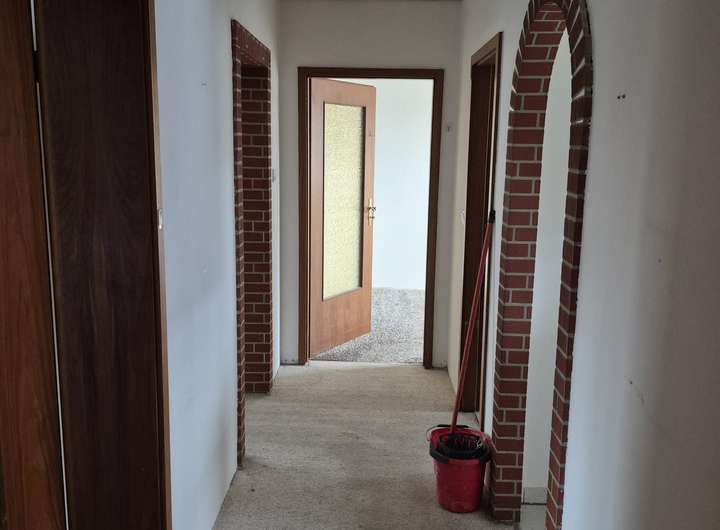 Die Aufteilung der Wohnungen folgt dem klassischen Aufbau seiner Zeit. Die Räumlichkeiten erstrecken sich über den Flur, links und rechts gelegen und sind fast identisch im Schnitt.