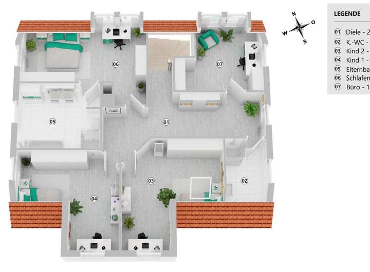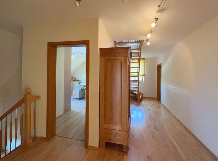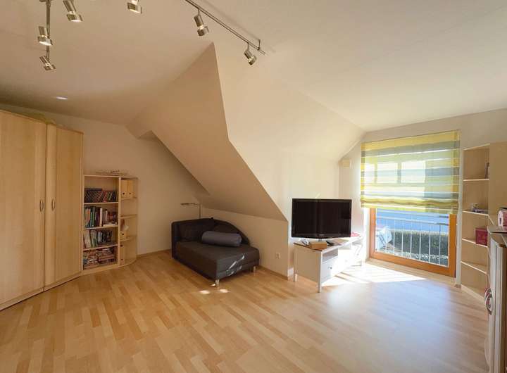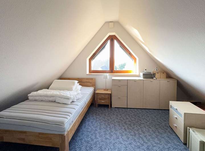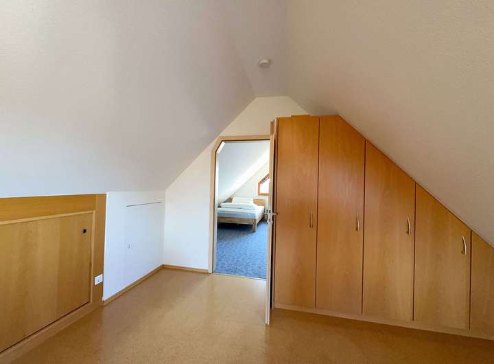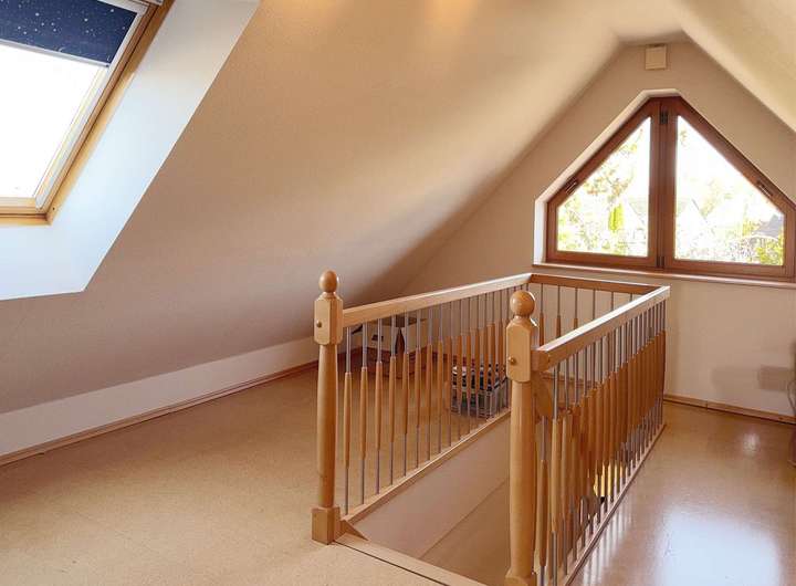 Das Obergeschoss besticht durch seine großzügige Raumaufteilung und liebevolle Details, die durch Gauben entstehen.