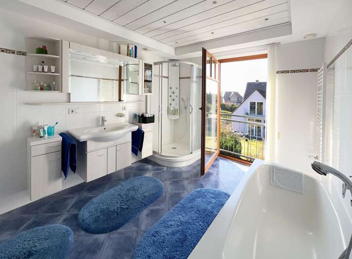 Zwei großzügige Bäder jeweils mit Wanne und separater Dusche stehen zur Verfügung. Das Masterbad hat einen direkten Zugang vom Elternschlafzimmer.