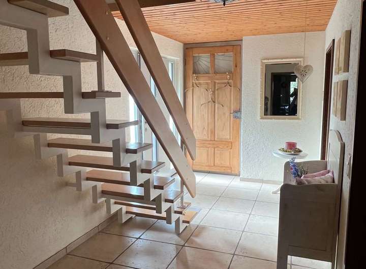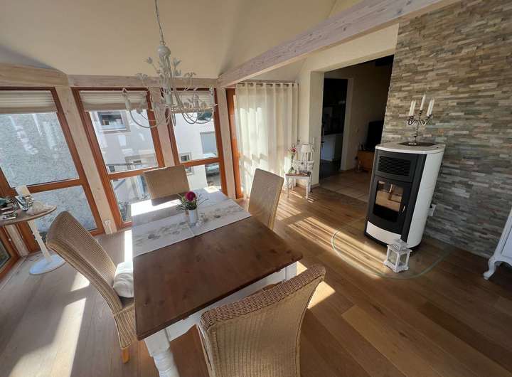 Durch die offene Bauweise fällt sehr viel Licht in die einzelnen Räume und man fühlt sich sehr wohl. Die zwei Kaminöfen im Wohn- und Essbereich sorgen für eine gemütliche Atmosphäre.