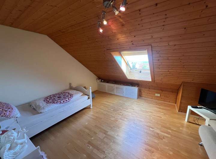 Im Dachgeschoss befindet sich noch ein großzügiger Raum (ca. 30 qm), der ohne großen Aufwand zur Wohnfläche erweitert werden kann.