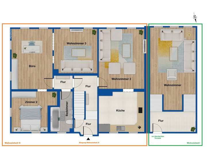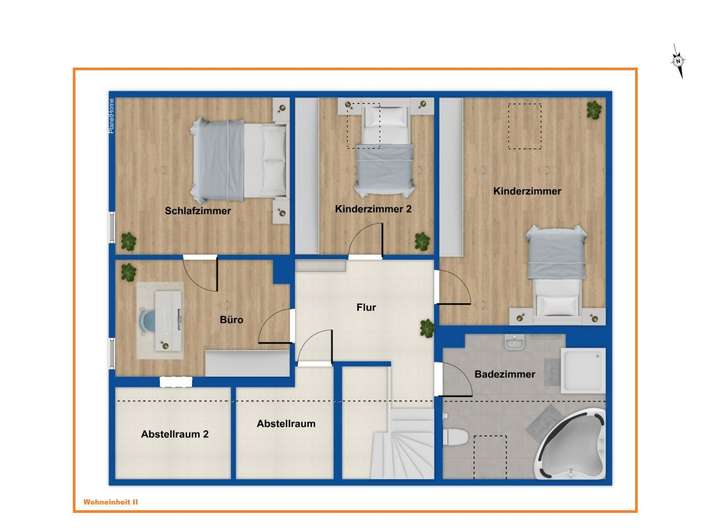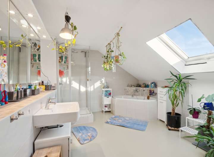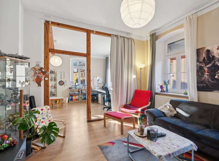 Die zweite Wohneinheit befindet sich im Ober- und Dachgeschoss und bietet mit ca. 173 m² Wohnfläche ausreichend Platz für eine große Familie oder als Mehrgenerationenhaus. Hier finden Sie acht Zimmer sowie zwei Bäder, die ebenfalls hochwertig saniert wurden. Diese Einheit ist derzeit vermietet und generiert eine Mieteinnahme von derzeit ca. 9.840 EUR p. a. zzgl. Nebenkosten. Diese Angaben stammen vom Eigentümer (Stand: April 2025). Für deren Richtigkeit und Vollständigkeit übernimmt die PlanetHome Group GmbH keinerlei Haftung.