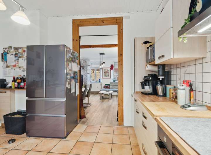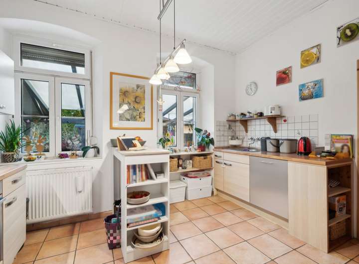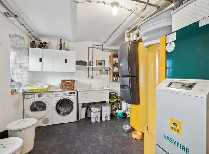 Das Objekt zeigt eindrucksvoll, dass auch ältere Häuser energetisch saniert werden können. Eine moderne Pelletheizung wird durch eine Solarthermieanlage auf dem Dach unterstützt, was zu einer nachhaltigen Energieversorgung beiträgt. Ebenso in die Heizungsanlage integriert, ist der Holzofen in der Küche des Erdgeschosses, was zu einer zusätzlichen Effizienzsteigerung beiträgt. Zudem wurden die Fenster erneuert die Dachdämmung verbessert, und teilweise eine Wandheizung mit Lehmputz eingebaut, um den Wohnkomfort weiter zu steigern.