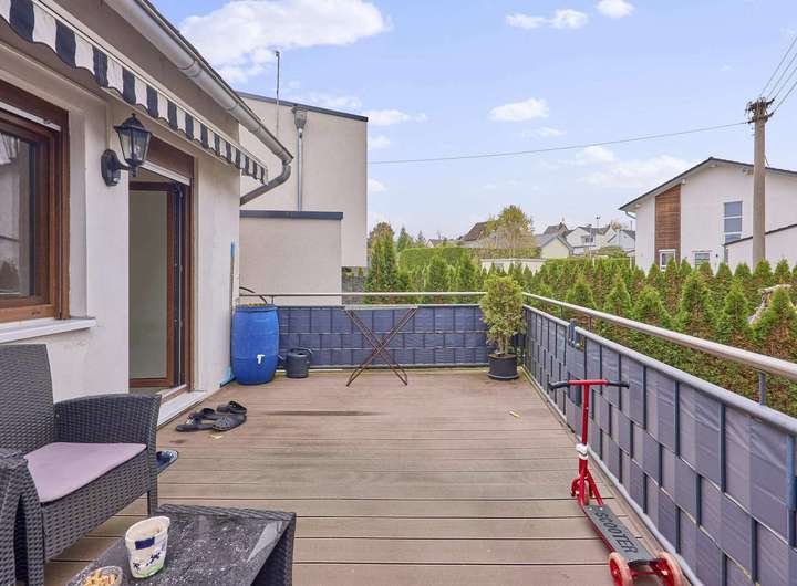 Das Dach wurde schätzungsweise in den 60er/70er Jahren mit Kunstschiefer neu eingedeckt, die Außenwände 2009 gedämmt und gestrichen, die Heizungsanlage 1997 erneuert. Von 2009 bis 2017 wurden zahlreiche Gewerke modernisiert: Heizkörper, Sanitäranlagen, Wasser- und Abwasserleitungen, Fenster, Haustür, Innentüren, Wand- und Bodenbeläge sowie teilweise Stromleitungen und Elektroverteilung. Das überschaubare Grundstück ermöglicht einen hohen Gebäudeanteil zur steuerlichen Abschreibung – ein relevanter Vorteil für Kapitalanleger. Die größte der drei Wohnungen verfügt über eine großzügige, überdachte Terrasse – ein echtes Plus für Mieter, die gerne im Freien entspannen oder grillen möchten.