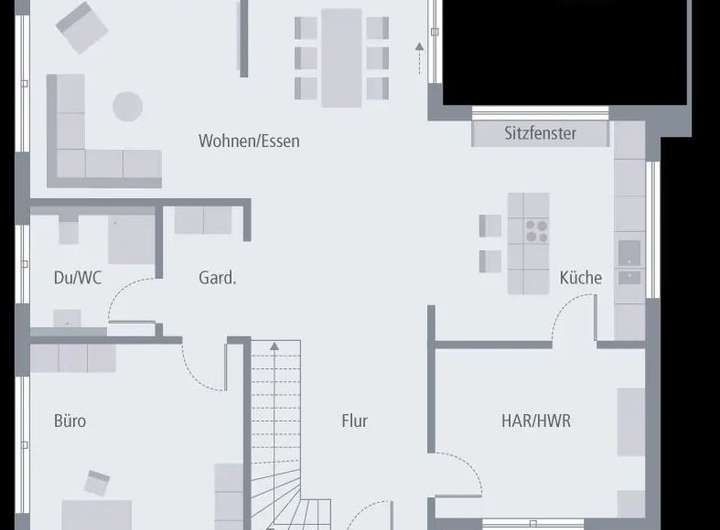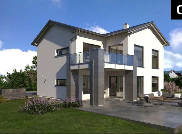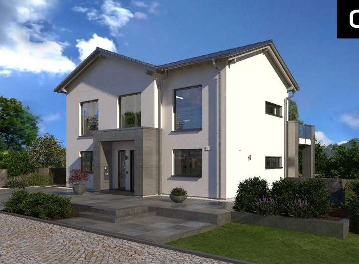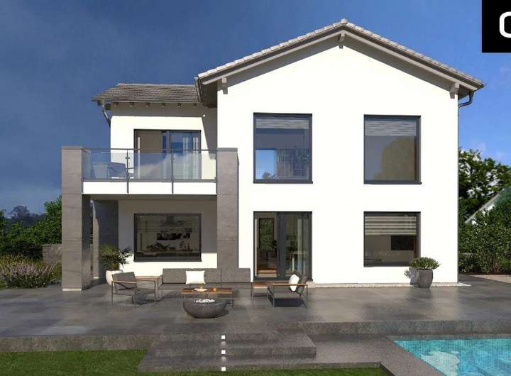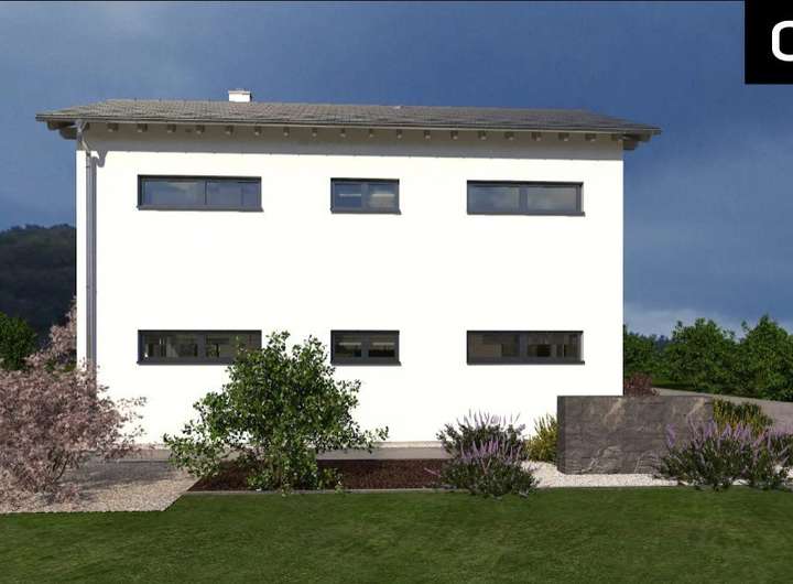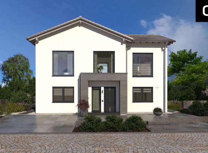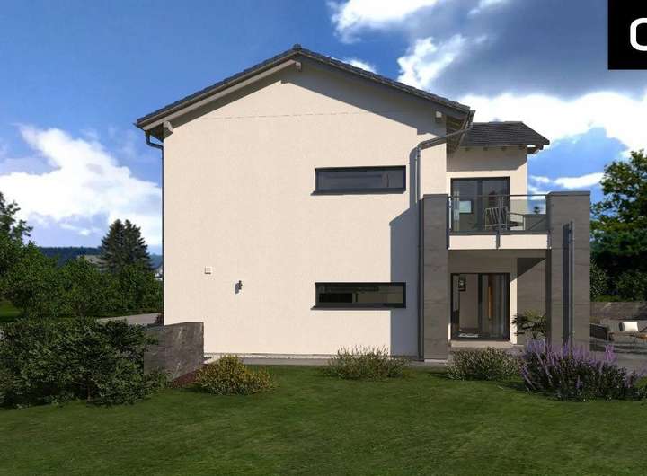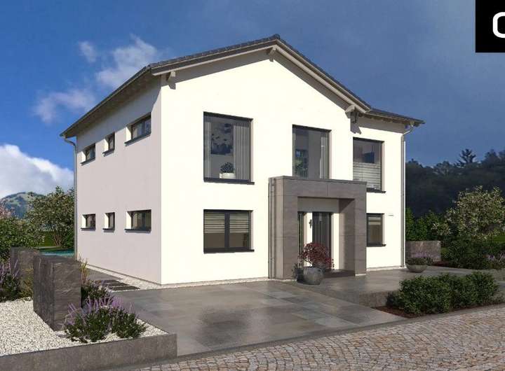 Zeitlose Eleganz gepaart mit zahlreichen kleinen und großen Details, die das Wohnen noch angenehmer, noch schöner, noch komfortabler machen - das zeichnet unser Musterhaus Landau aus. Die zeitlose Eleganz wird bereits an der Fassade sichtbar. Der Grundriss unter dem Satteldach ist so konzipiert, dass dank eines Rückversatzes im ersten Obergeschoss ein Balkon zum Verweilen und Entspannen einlädt, während darunter ein überdachter Terrassenbereich entsteht. Große Fensterfronten lockern die Fassade auf - und sorgen im Inneren für maximalen Lichteinfall. Apropos Inneres: Das wartet auf einer Wohnfläche von rund 245 m² mit einer durchdachten Raumplanung auf. Die Diele geht unmittelbar in den Wohn-Ess-Koch-Bereich über. Und weil die Schiebetüren direkt in den Garten führen, entsteht ein Gefühl von Weite - Natur und Wohnen verschmelzen miteinander. Ebenfalls im Erdgeschoss: Büro, Hauswirtschaftsraum sowie Gäste-WC. Maximale Gestaltungsmöglichkeiten haben die Hausherren im Obergeschoss: zwei Badezimmer, ein Elternschlafzimmer sowie drei weitere Räume, die als Kinderzimmer, Hobbyraum oder Büro genutzt werden können, lassen keine Wünsche offen.