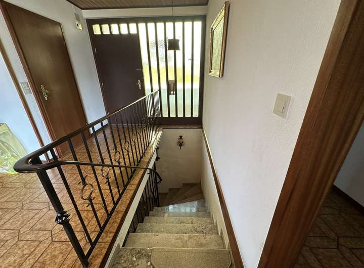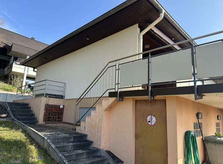 voll unterkellert angeboten . Die Immobilie ist ein NordHaus Fertighaus und wurde 1976 erstellt (bemerkenswert der vorliegende Energiebedarfsausweis weiter unten) . Beeindruckend ist die Lage mit Blick über das Guldenbachtal und zum Schindeldorf. Diesen Blick genießen Sie aus dem Wohnzimmer aber auch von der Außenterrasse. Das Wohnzimmer schmückt ein bemerkenswerter Kamin ( geprüft und bescheinigt am 25.03.2025) . Durch den innenliegenden Flur gelangen Sie bequem in alle Räume auf einer Ebene , ins Untergeschoß führt eine breite Treppe zu mehreren Räumen. Am Haus selbst können je nach Größe 1-2 Fahrzeuge abgestellt werden. Eine Garage mit Stellplatz ist in ca. 20m Entfernung.
