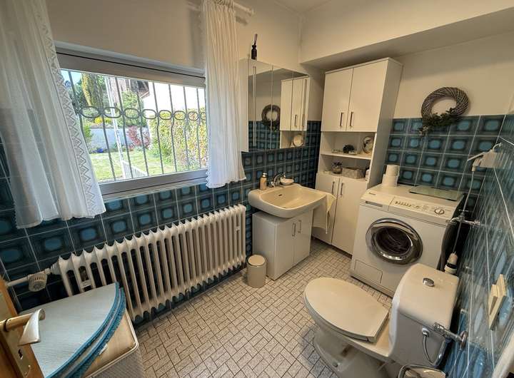 Das Haus ist teilunterkellert und bietet mit mehreren Kellerräumen, einem Öltankraum und einer praktischen Außentreppe in den Garten viel Stauraum. Im KG ist im Eingangsbereich eine kleiner Raum mit Toilette und Waschbecken aktivierbar.