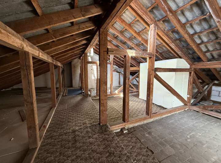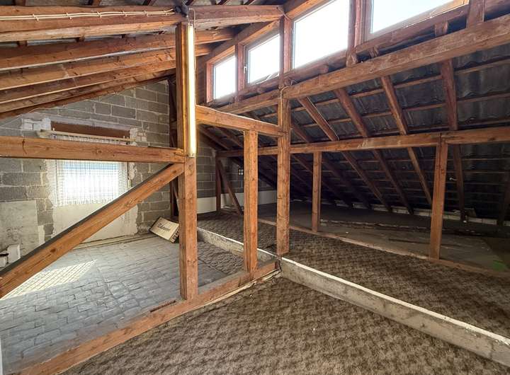 Das Dachgeschoss ist bereits für einen möglichen späteren Ausbau vorbereitet – sechs Fenster sorgen für Helligkeit und machen den Raum zu einer spannenden Option für zusätzliche Wohnfläche, ein Studio oder ein Hobbyzimmer.