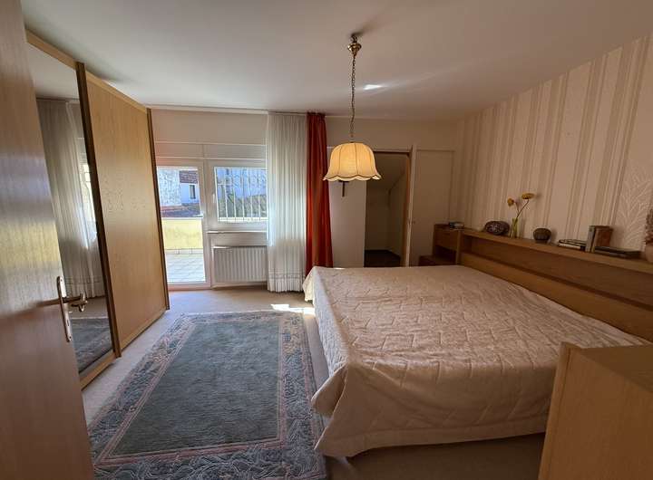 Über die schöne Holztreppe geht’s ins Obergeschoss: Das Schlafzimmer punktet mit direktem Zugang zum Balkon und einem angrenzenden Ankleidezimmer – ein echtes Plus! Außerdem warten hier vier weitere Zimmer, die sich individuell gestalten lassen – ob Kinderzimmer, Gästezimmer oder Kreativraum.