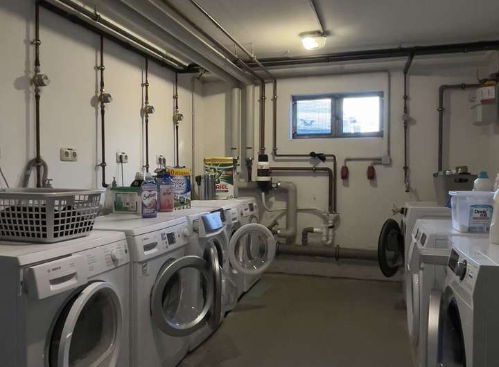 Der Keller des Hauses ist trocken und in bietet neben dem Fahrradkeller und dem Hauswirtschaftsraum mit Anschlüssen für Waschmaschinen und Trockner auch ein-zelne abgemauerte Mieterkeller. Zur Liegenschaft gehören 6 Außen-Stellplätze.