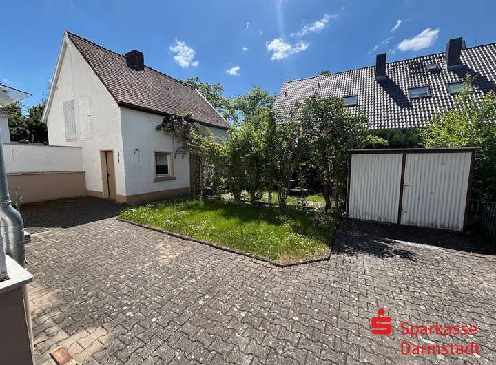 Zu der Immobilie gehören eine befestigte Hoffläche, ein Seitengebäude und ein kleiner Garten.