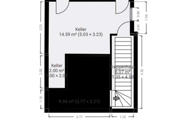 Das kleine Kellergeschoss besteht aus einem Vorratsraum, Hausanschlussraum und dem Heizungsraum.